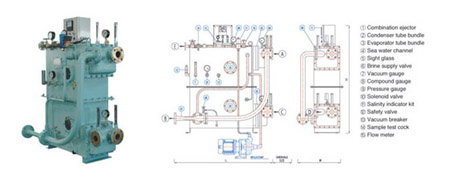 Ο αποστακτήρας εξάτμισης κενού DHP βασίζεται στον εναλλάκτη θερμότητας πλάκας τιτανίου της DHP, ο ένας για την εξάτμιση της θερμαινόμενης άλμης και ο άλλος για τη συμπύκνωση των υδρατμών.
